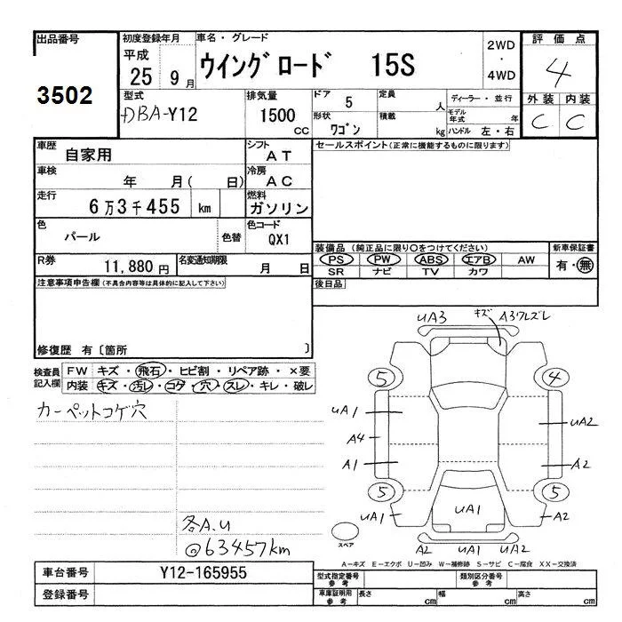 Nissan WINGROAD с аукциона Японии JU Shizuoka лот № 3502