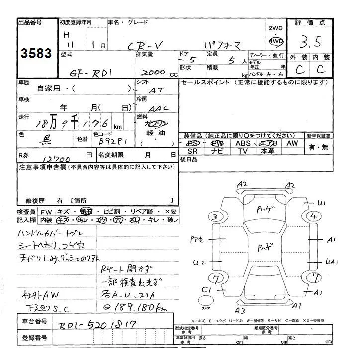 Honda CR-V с аукциона Японии JU Shizuoka лот № 3583