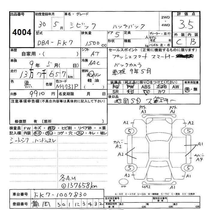 Honda CIVIC с аукциона Японии JU Shizuoka лот № 4004