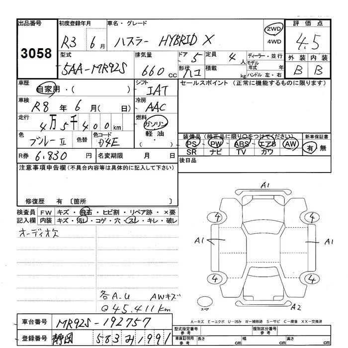 Suzuki HUSTLER с аукциона Японии JU Shizuoka лот № 3058