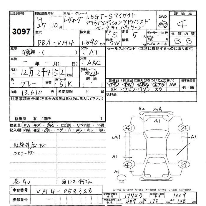 Subaru LEVORG с аукциона Японии JU Shizuoka лот № 3097