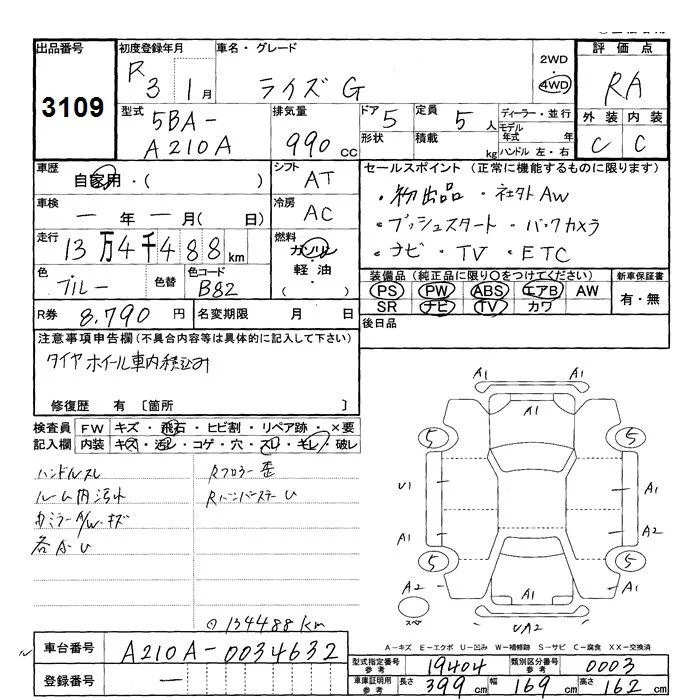 Toyota RAIZE с аукциона Японии JU Shizuoka лот № 3109