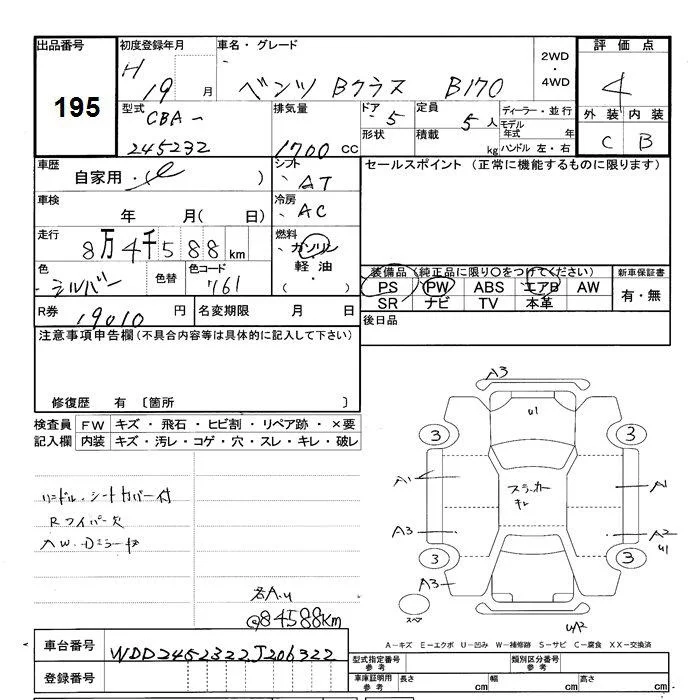 Mercedes-Benz B CLASS с аукциона Японии JU Shizuoka лот № 195