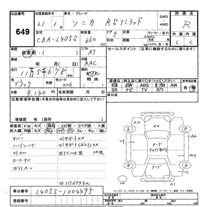 Daihatsu SONICA с аукциона Японии JU Shizuoka лот № 649