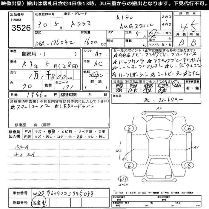 Mercedes-Benz A CLASS с аукциона Японии JU Mie лот № 3526