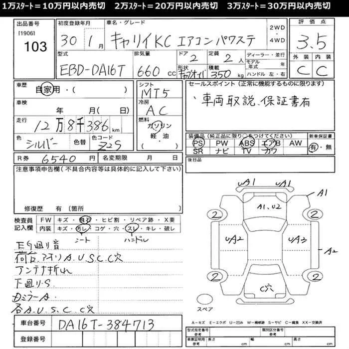 Suzuki CARRY TRUCK с аукциона Японии JU Mie лот № 103