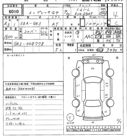 Subaru IMPREZA G4 с аукциона Японии SAA Sapporo лот № 6010
