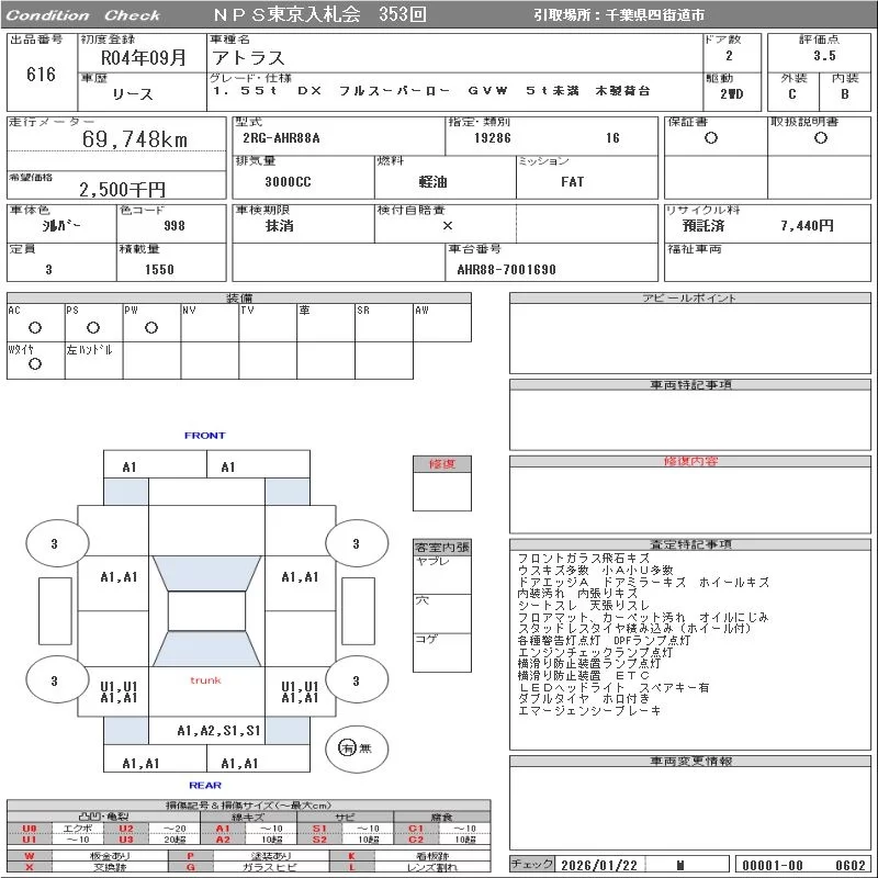 Nissan ATLAS с аукциона Японии NPS Tokyo Nyusatsu лот № 616