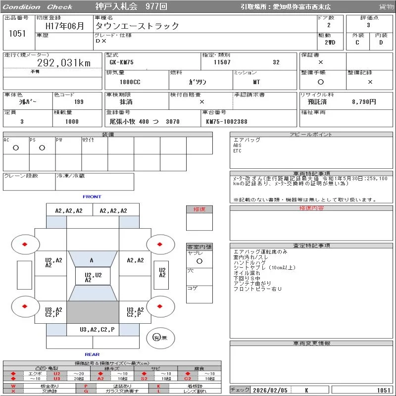 Toyota TOWN ACE TRUCK с аукциона Японии ORIX Kobe Nyusatsu лот № 1051