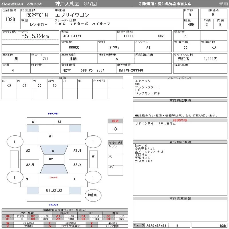 Suzuki EVERY WAGON с аукциона Японии ORIX Kobe Nyusatsu лот № 1030