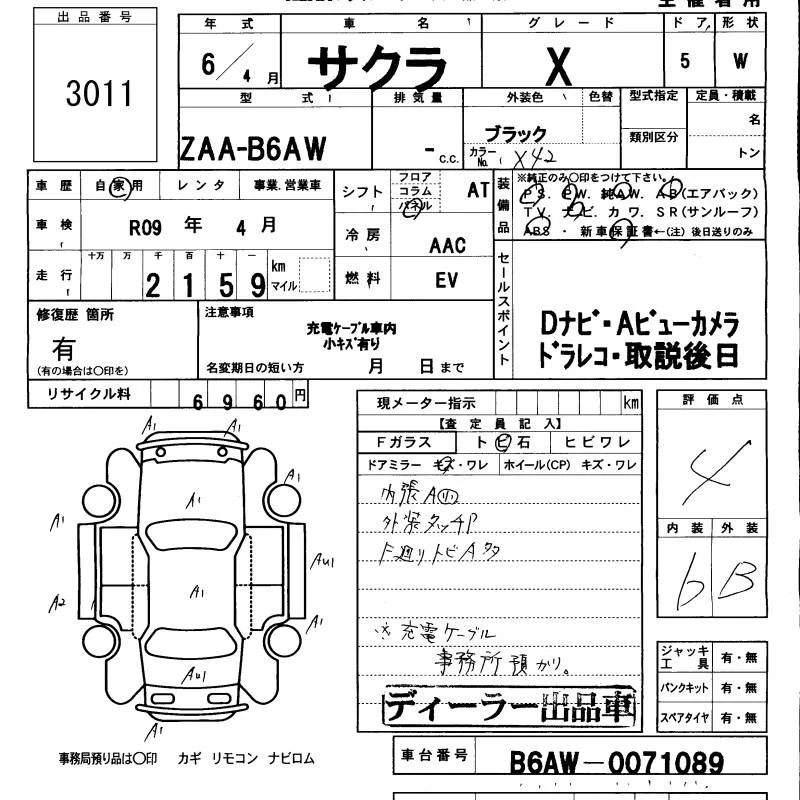 Nissan SAKURA с аукциона Японии KCAA Minami Kyushu лот № 3011