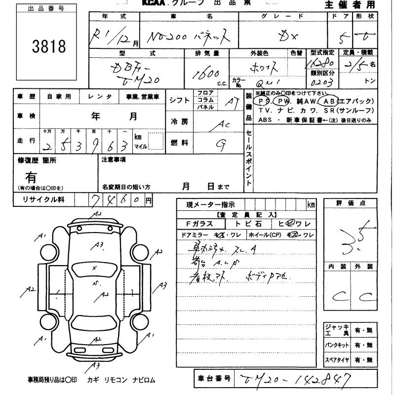 Nissan NV200 с аукциона Японии KCAA Minami Kyushu лот № 3818