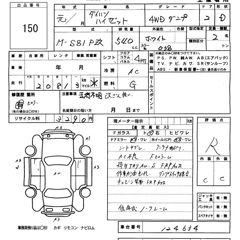 Daihatsu HIJET TRUCK с аукциона Японии KCAA Minami Kyushu лот № 150