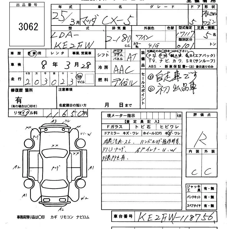 Mazda CX-5 с аукциона Японии KCAA Minami Kyushu лот № 3062