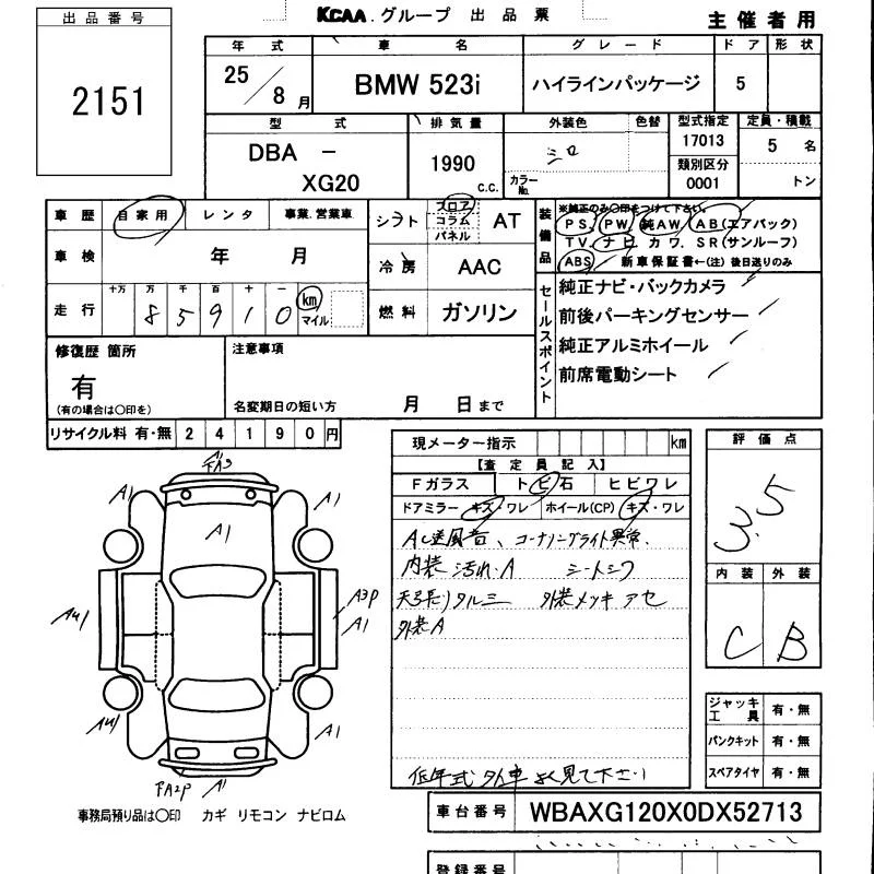 BMW 5-Series с аукциона Японии KCAA Minami Kyushu лот № 2151