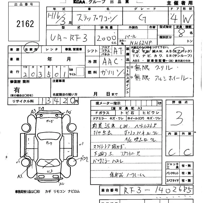 Honda STEP WAGON с аукциона Японии KCAA Minami Kyushu лот № 2162