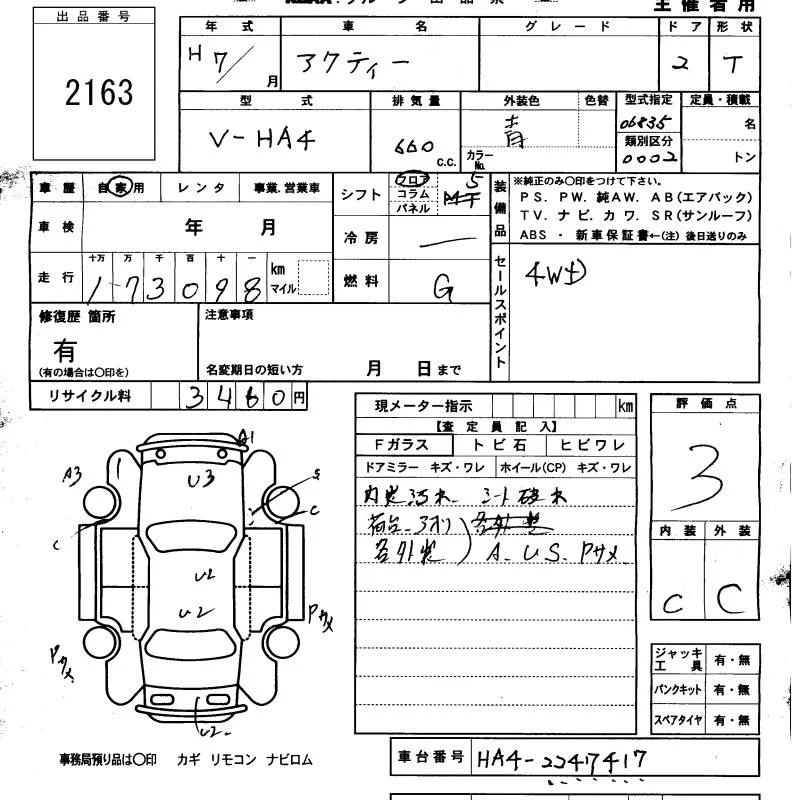 Honda ACTY TRUCK с аукциона Японии KCAA Minami Kyushu лот № 2163