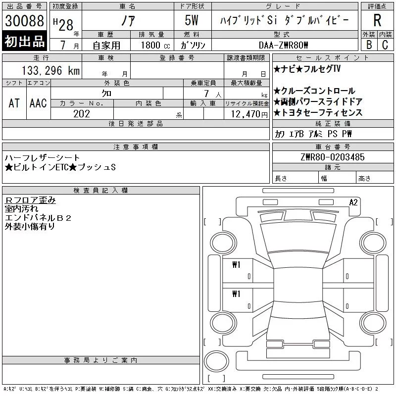 Toyota NOAH с аукциона Японии CAA Chubu лот № 30088