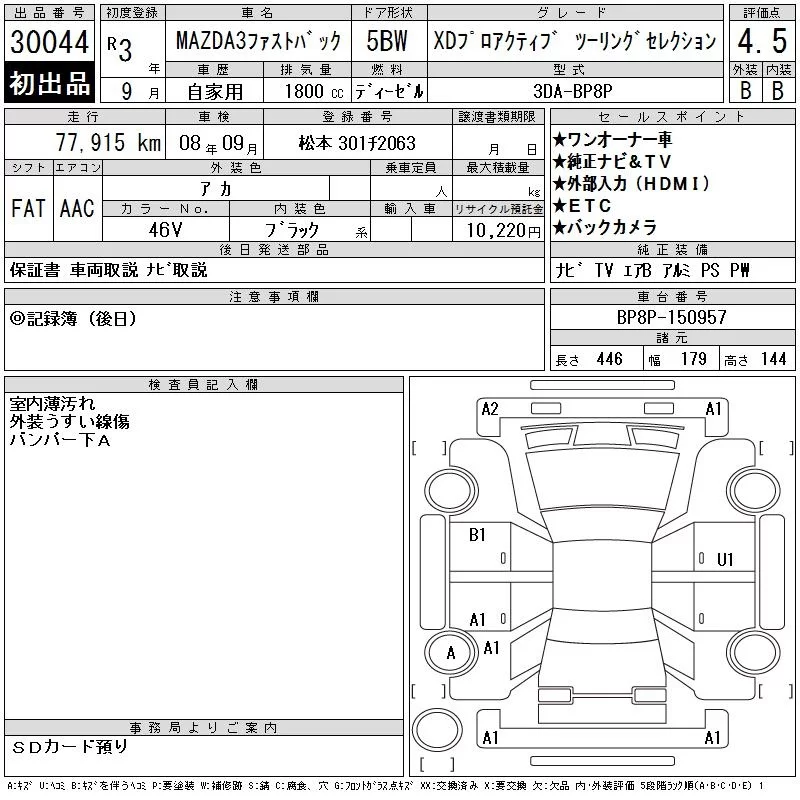 Mazda MAZDA3 с аукциона Японии CAA Chubu лот № 30044