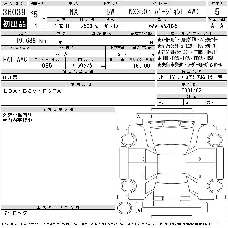 Lexus NX с аукциона Японии CAA Chubu лот № 36039