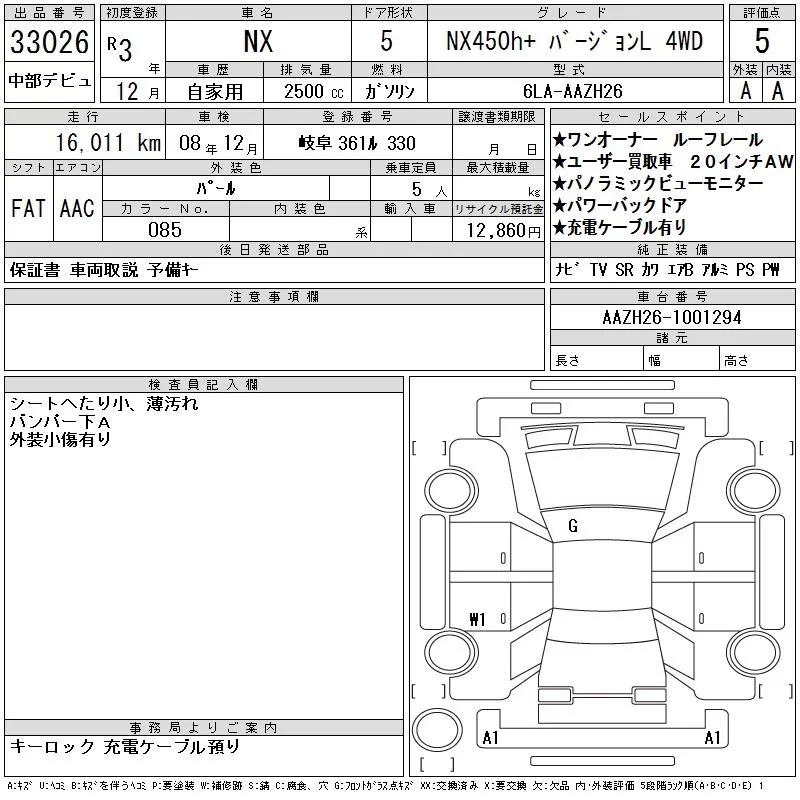 Lexus NX с аукциона Японии CAA Chubu лот № 33026