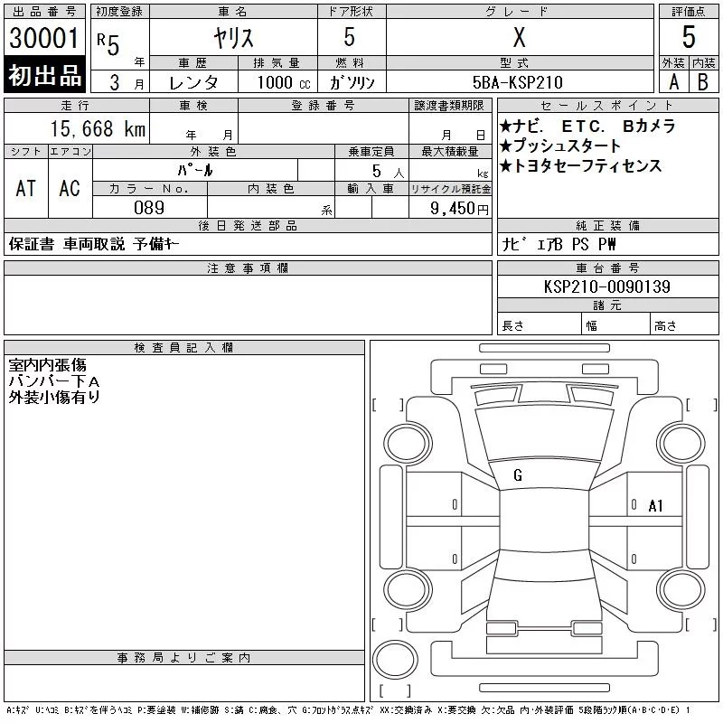 Toyota YARIS с аукциона Японии CAA Chubu лот № 30001