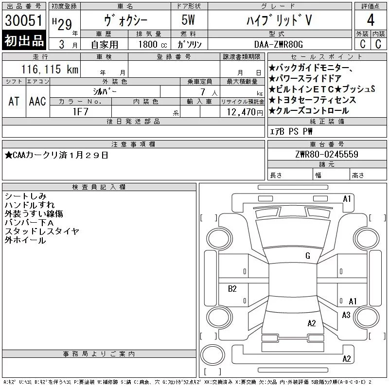 Toyota VOXY с аукциона Японии CAA Chubu лот № 30051