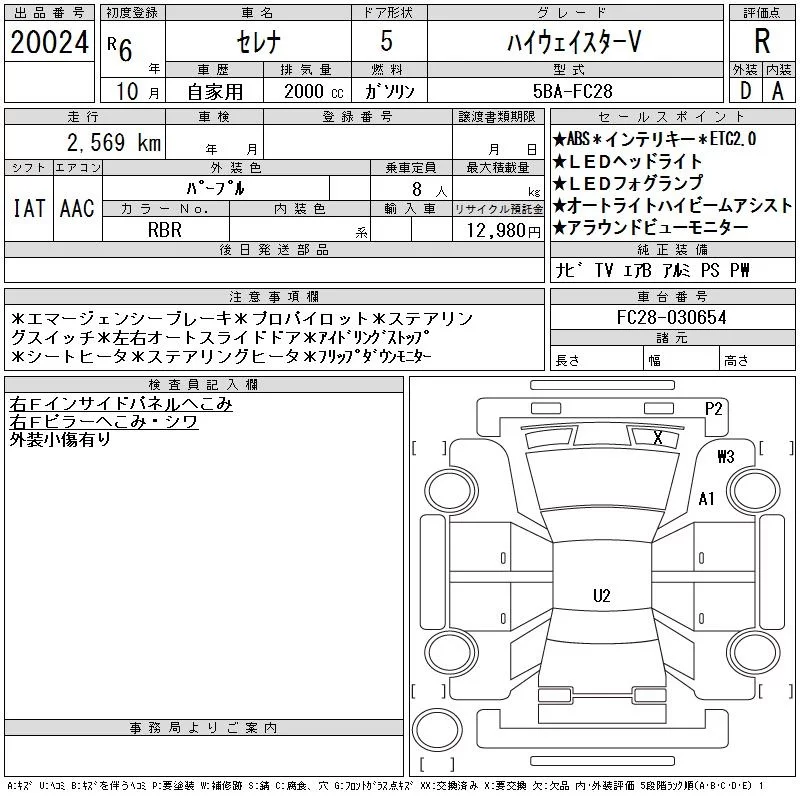 Nissan SERENA с аукциона Японии CAA Chubu лот № 20024