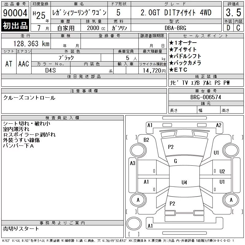 Subaru LEGACY с аукциона Японии CAA Chubu лот № 90004