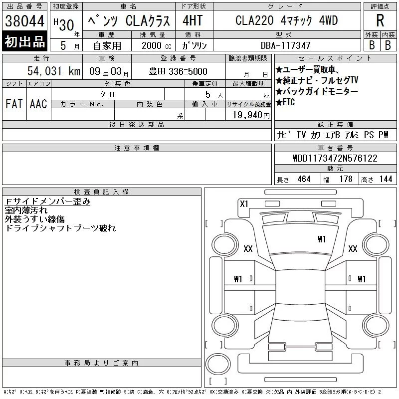 Mercedes-Benz CLA CLASS с аукциона Японии CAA Chubu лот № 38044