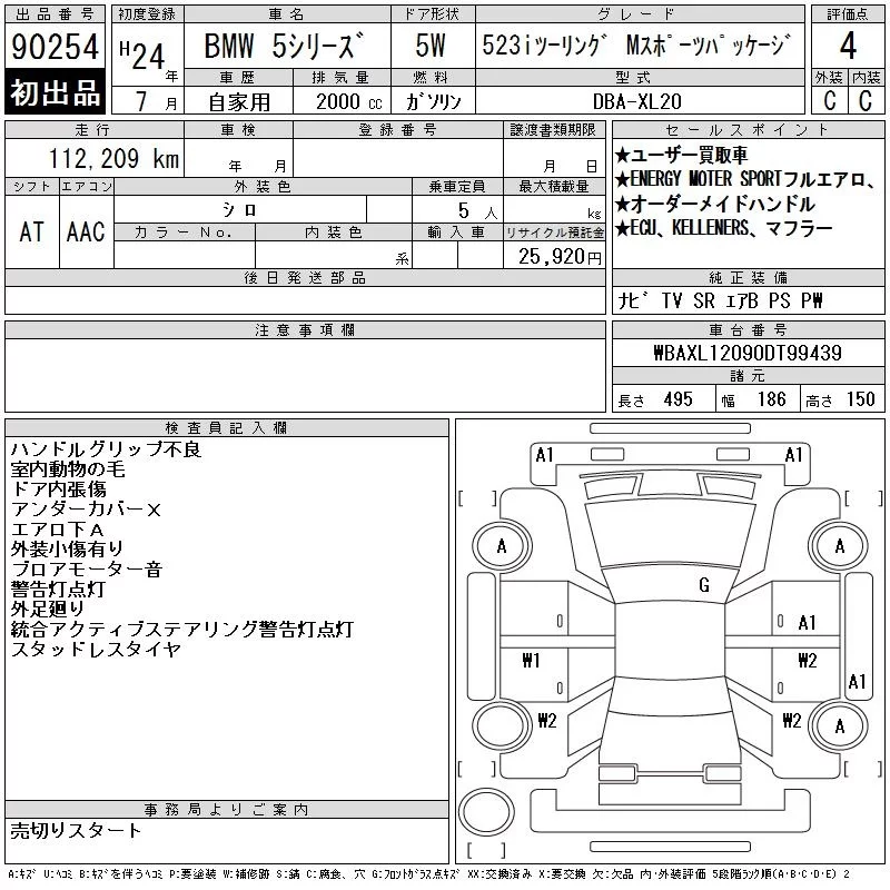 BMW 5-Series с аукциона Японии CAA Chubu лот № 90254