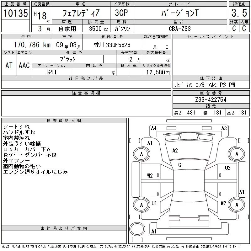 Nissan FAIRLADYZ с аукциона Японии CAA Chubu лот № 10135