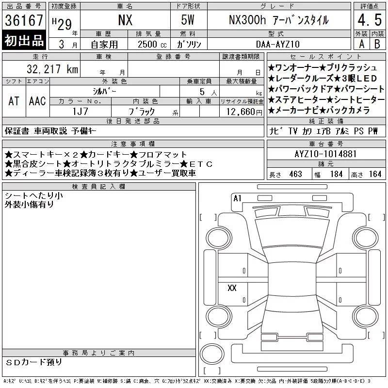 Lexus NX с аукциона Японии CAA Chubu лот № 36167