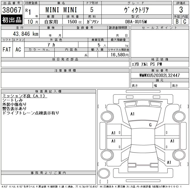 BMW MINI с аукциона Японии CAA Chubu лот № 38067