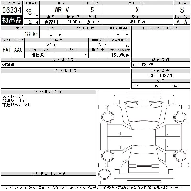 Honda WR-V с аукциона Японии CAA Chubu лот № 36234