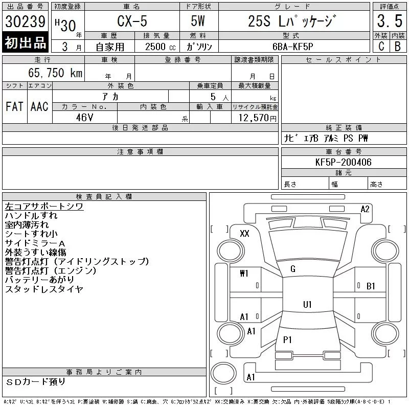Mazda CX-5 с аукциона Японии CAA Chubu лот № 30239