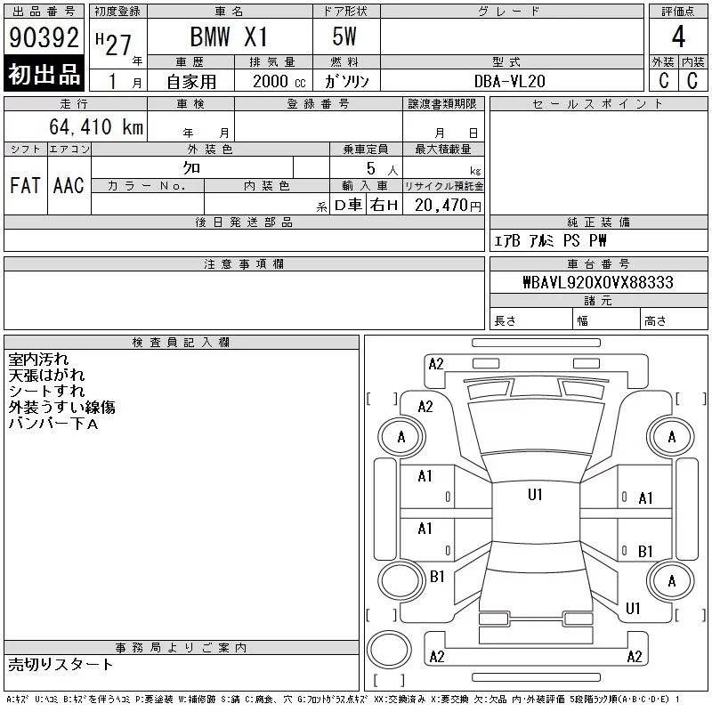 BMW X1 с аукциона Японии CAA Chubu лот № 90392