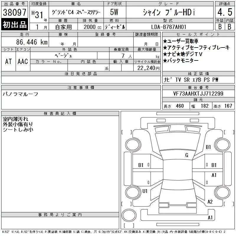 Citroen GRAND C4 с аукциона Японии CAA Chubu лот № 38097