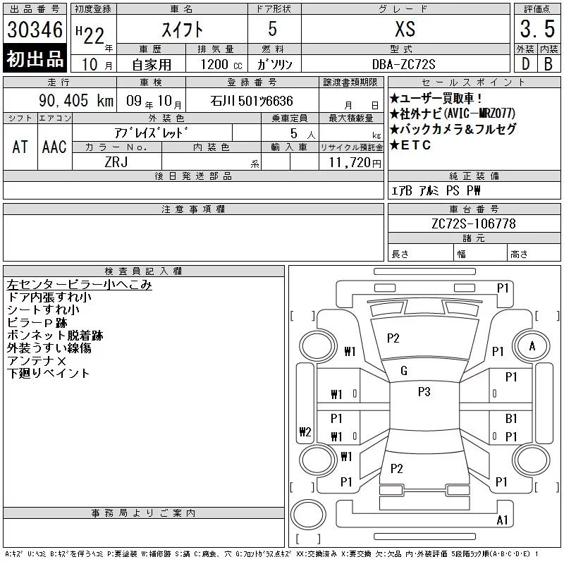 Suzuki SWIFT с аукциона Японии CAA Chubu лот № 30346