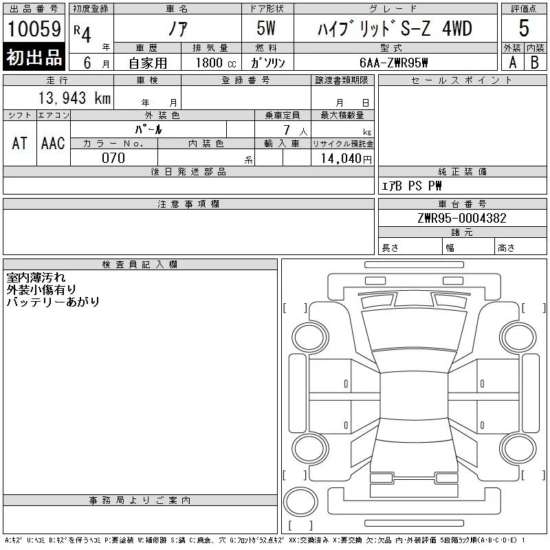 Toyota NOAH с аукциона Японии CAA Chubu лот № 10059