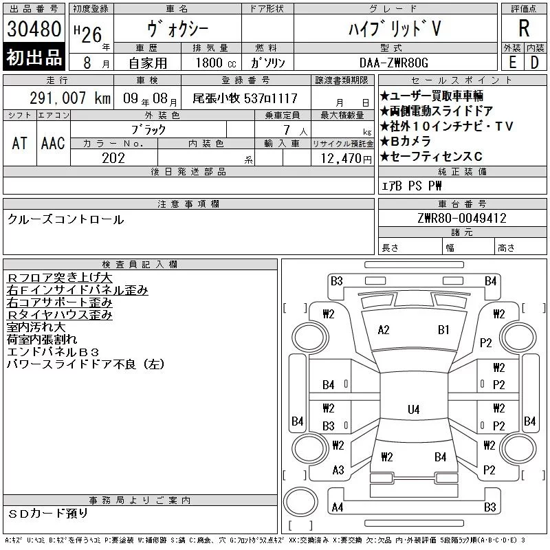 Toyota VOXY с аукциона Японии CAA Chubu лот № 30480