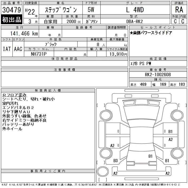 Honda STEP WAGON с аукциона Японии CAA Chubu лот № 30479