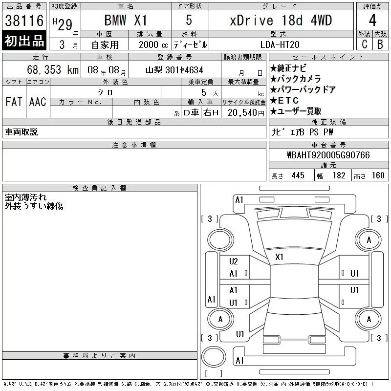 BMW X1 с аукциона Японии CAA Chubu лот № 38116