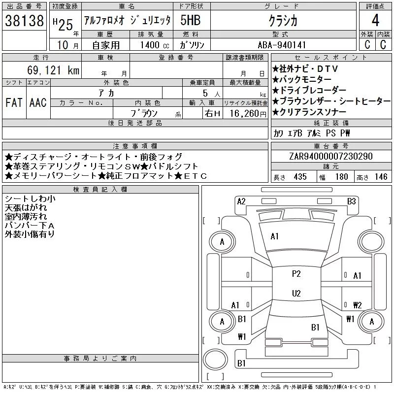 Alfa Romeo Giulietta с аукциона Японии CAA Chubu лот № 38138