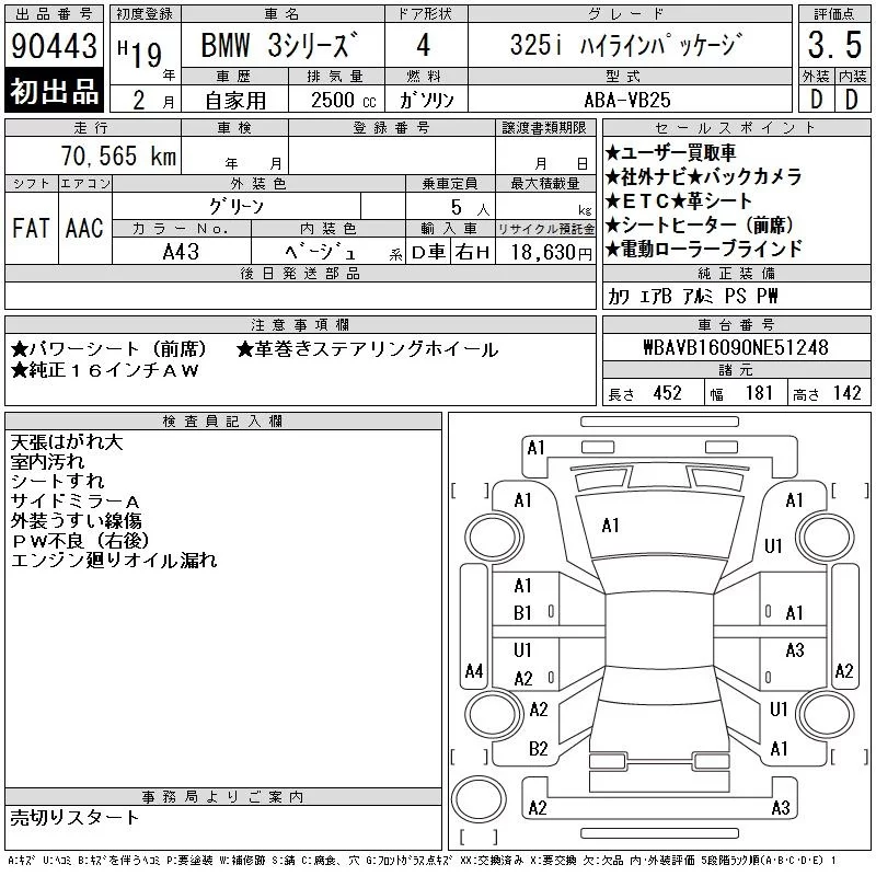 BMW 3-Series с аукциона Японии CAA Chubu лот № 90443