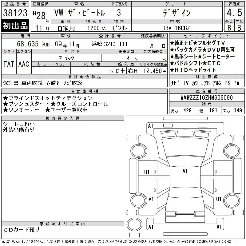Volkswagen THE BEETLE с аукциона Японии CAA Chubu лот № 38123