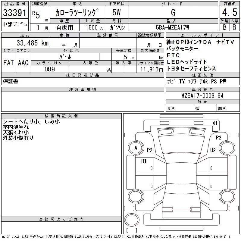 Toyota COROLLA TOURING с аукциона Японии CAA Chubu лот № 33391