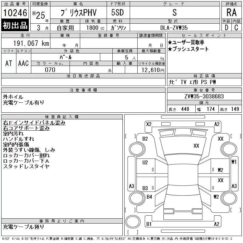 Toyota PRIUS PHV с аукциона Японии CAA Chubu лот № 10246