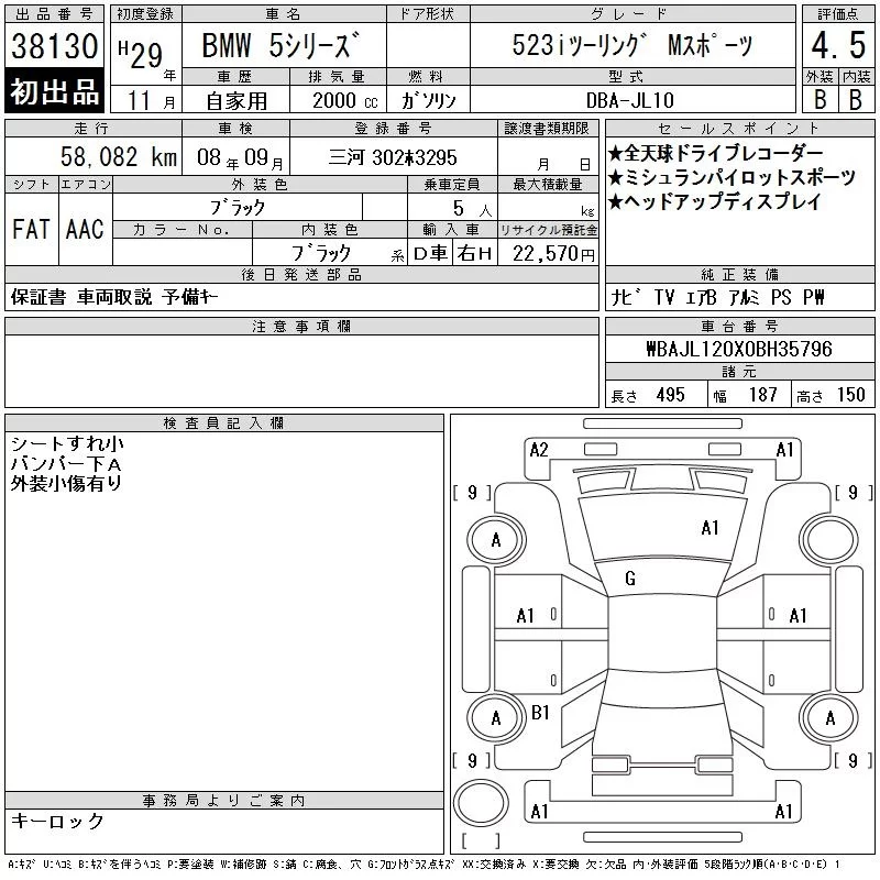 BMW 5-Series с аукциона Японии CAA Chubu лот № 38130
