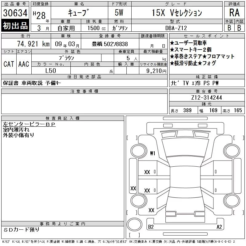 Nissan CUBE с аукциона Японии CAA Chubu лот № 30634